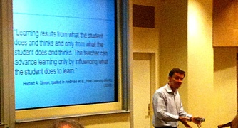 Dr. Peter Felten, Assistant Provost and Associate Professor of History at Elon University, presented at Queens University of Charlotte’s opening events. The interactive session developed engaged learning, which Felten defines as “requiring students to integrate, apply, and assess what they are learning in different contexts.”