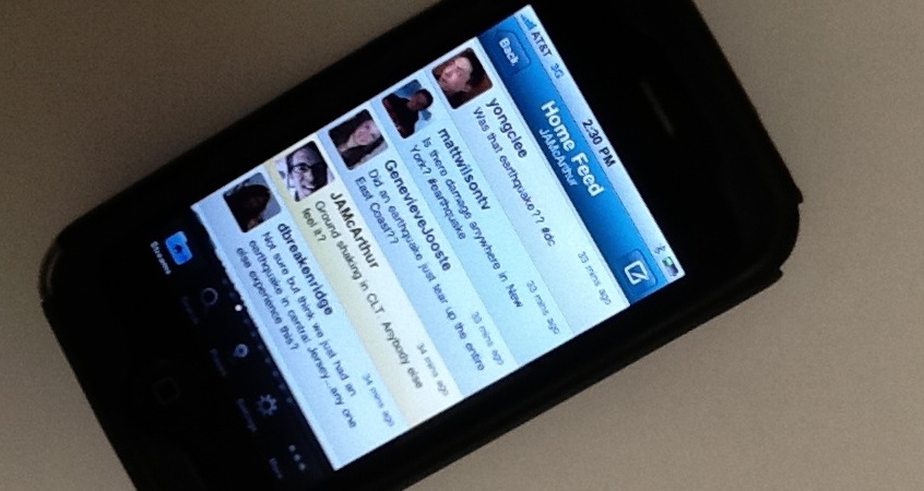 We turned to Twitter. Eight minutes after the event, we learned that the magnitude 5.8 earthquake shook Virginia 87 miles outside of Washington D.C. But before the news stations had time to report, accounts were coming in from my friends in DC, Boston, New Jersey and New York confirming that the earthquake shook the east coast.