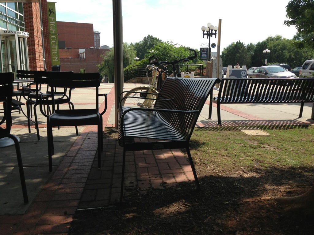 I engaged in a little test of this concept a few weeks ago in downtown Greenville, SC. Townes Plaza sits at the corner of Main Street and Camperdown Way, just across the street from the beautiful Falls Park. The plaza is named for Charles Townes, inventor of the laser and maser, and esteemed Greenvillian.